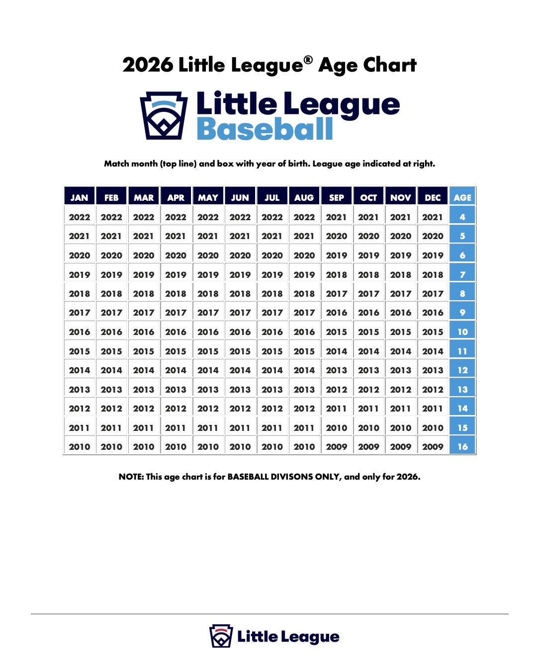 2026 Baseball Age Chart